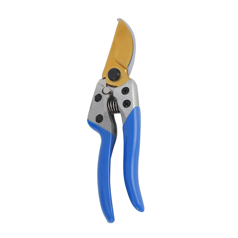 La lama è realizzata in acciaio SK5 di alta qualità, che vanta un'alta durezza e una forte tenacia. Viene trattato con un processo a doppia piastra-prima rivestito con cromo duro per migliorare la resistenza all'usura e la prevenzione della ruggine, quindi coperta con un rivestimento in titanio per migliorare la morbidezza. Ciò garantisce tagli puliti e ordinati che resistono all'adesione del ramo e mantengono una nitidezza duratura.